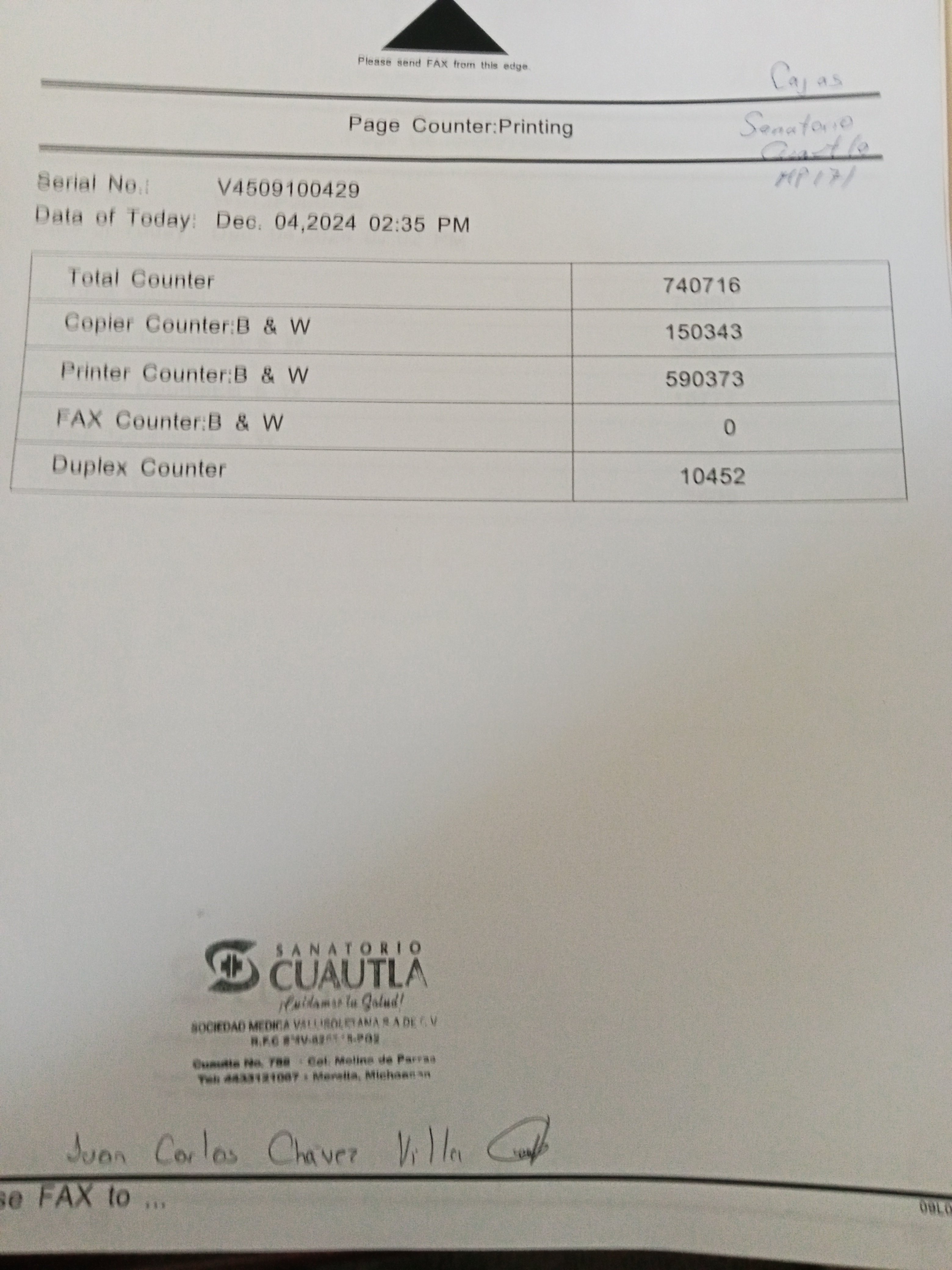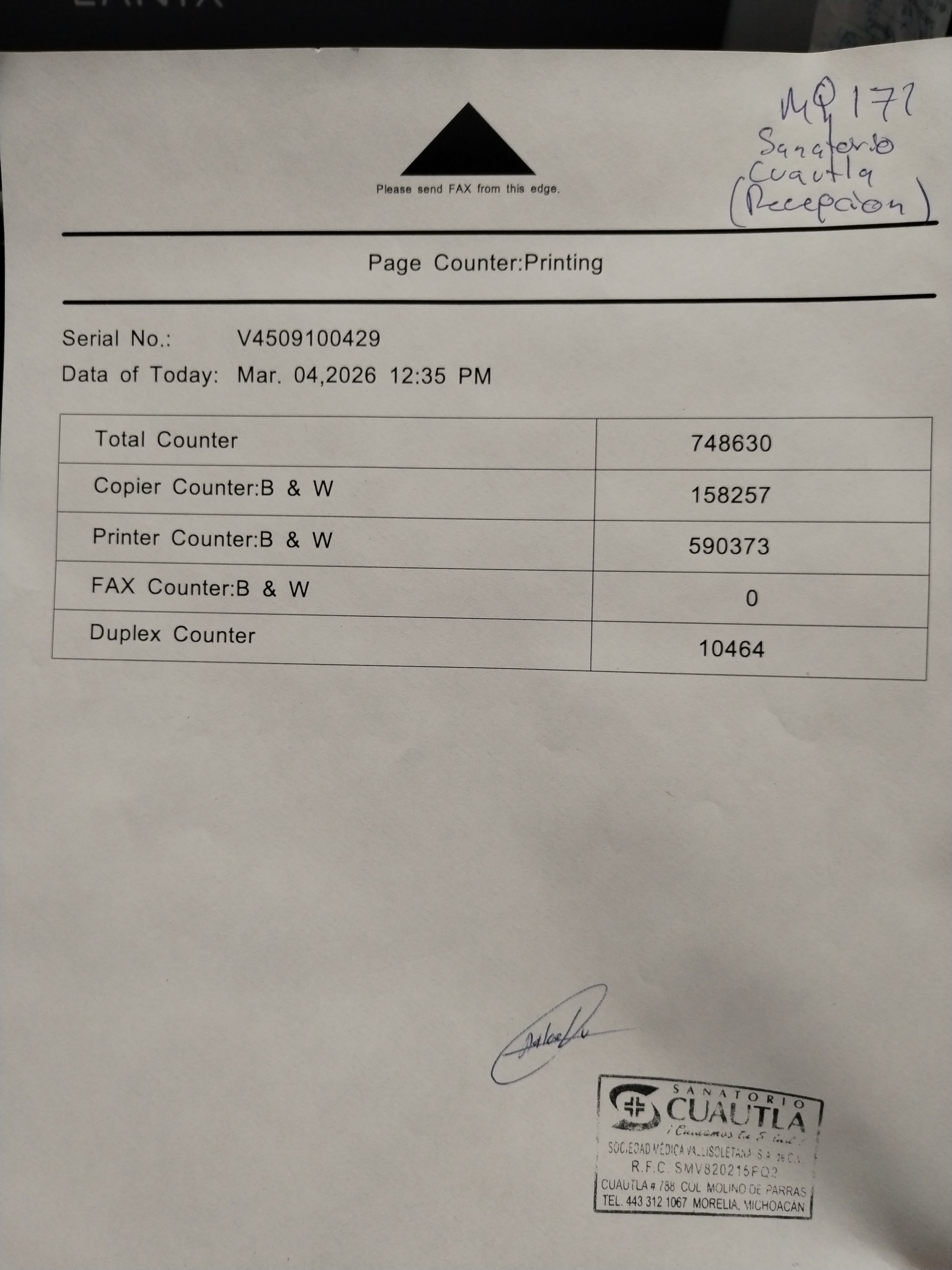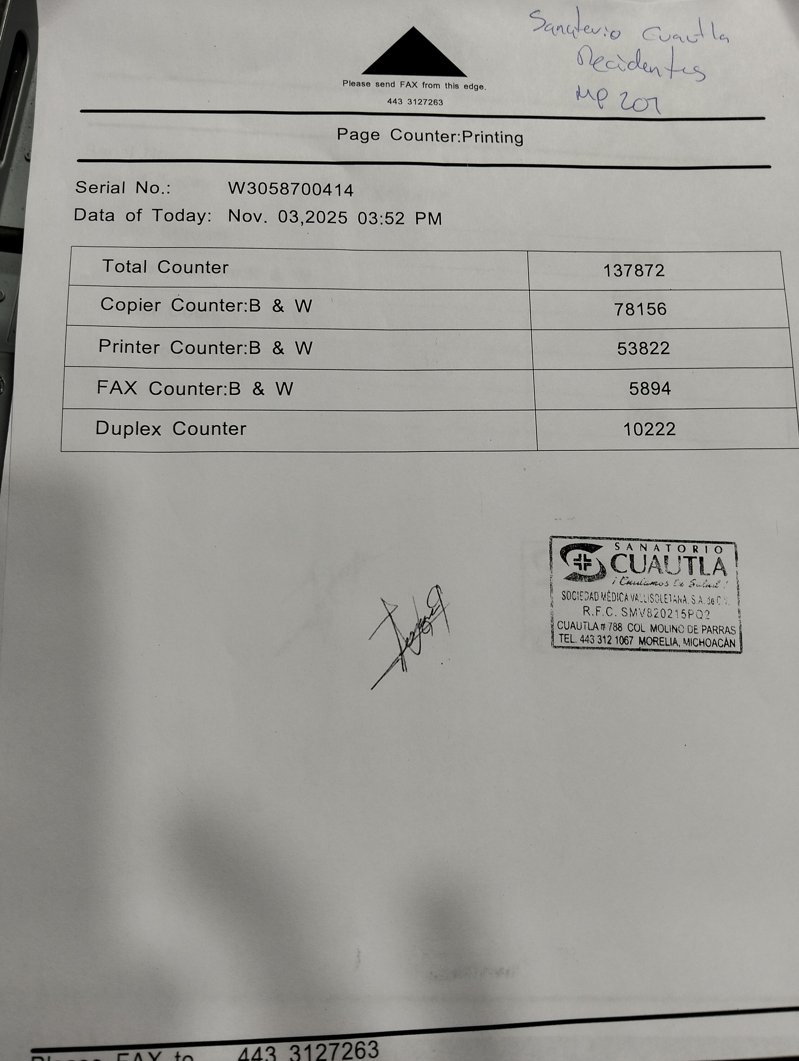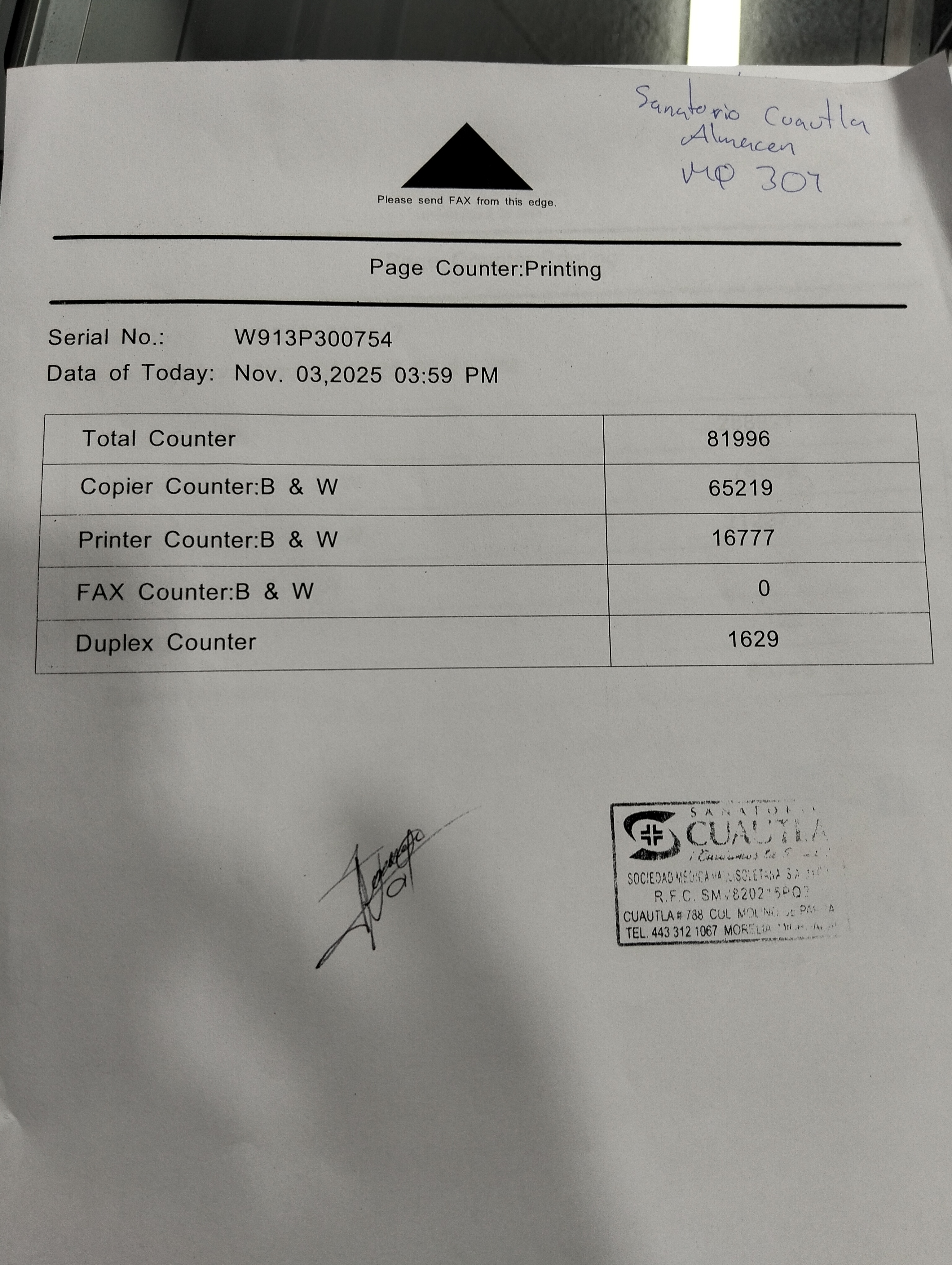 Programar servicio de mtto preventivo en este mes. Marca atasco papel en bandejas y no hay hoja atorada