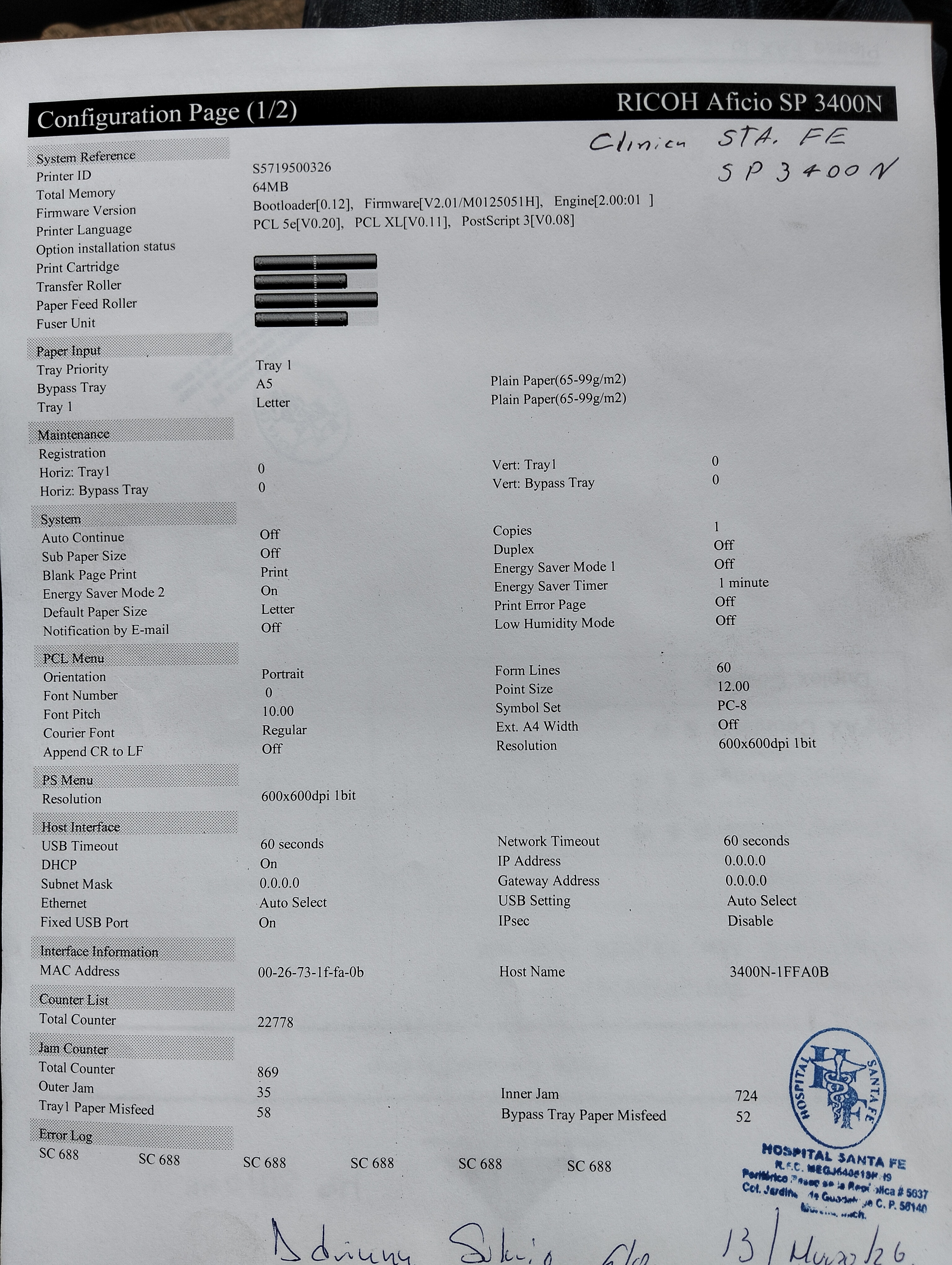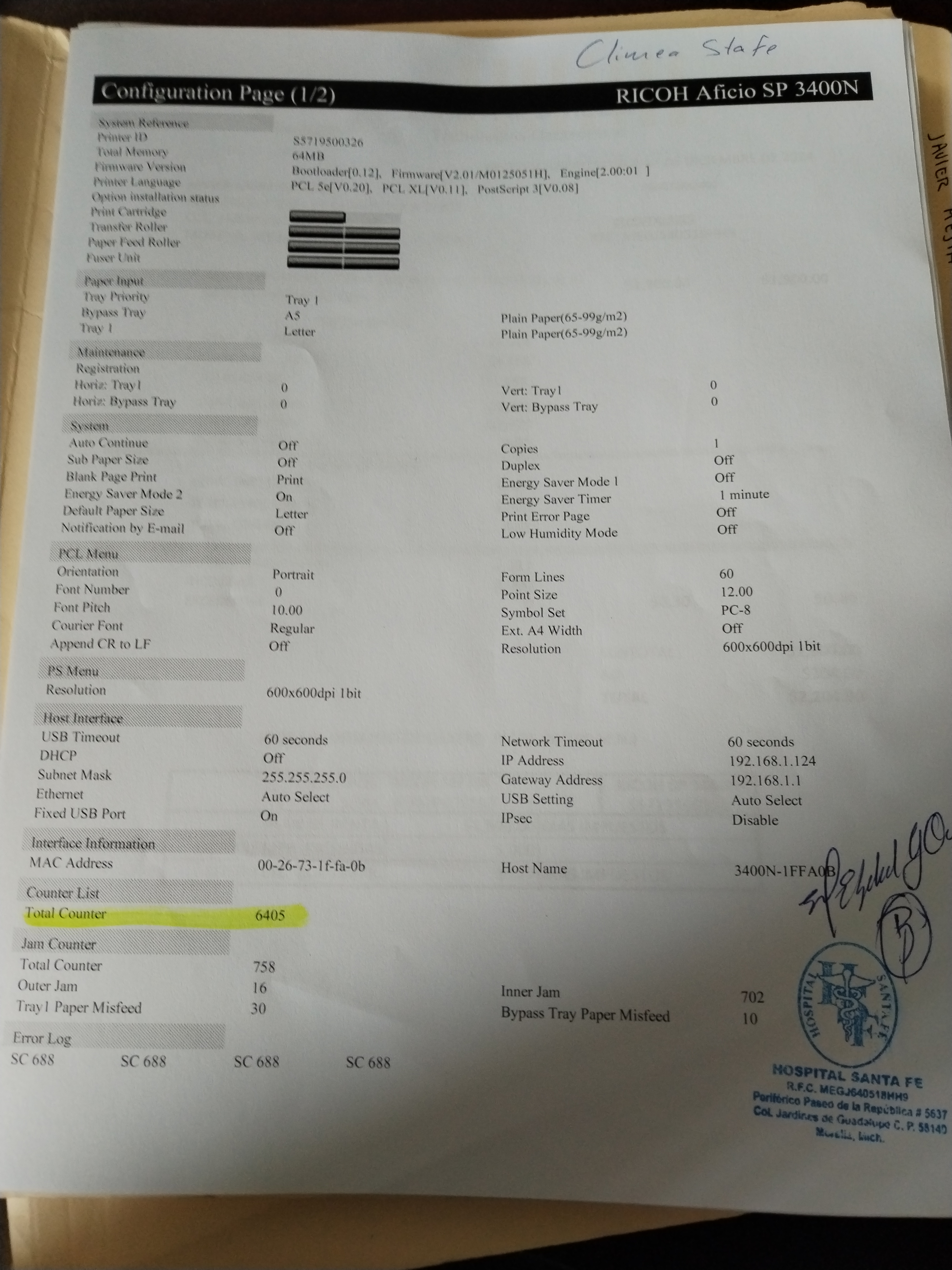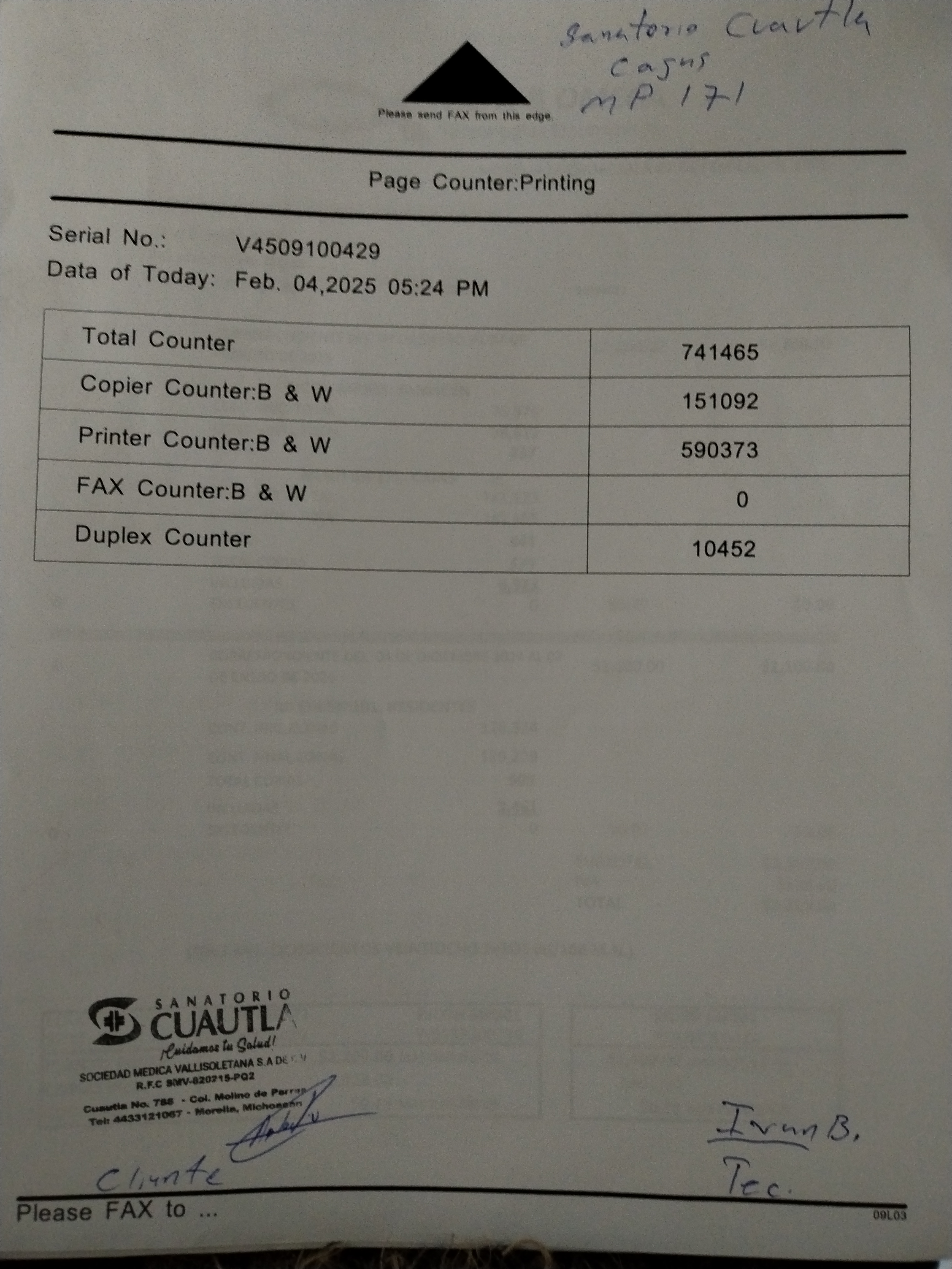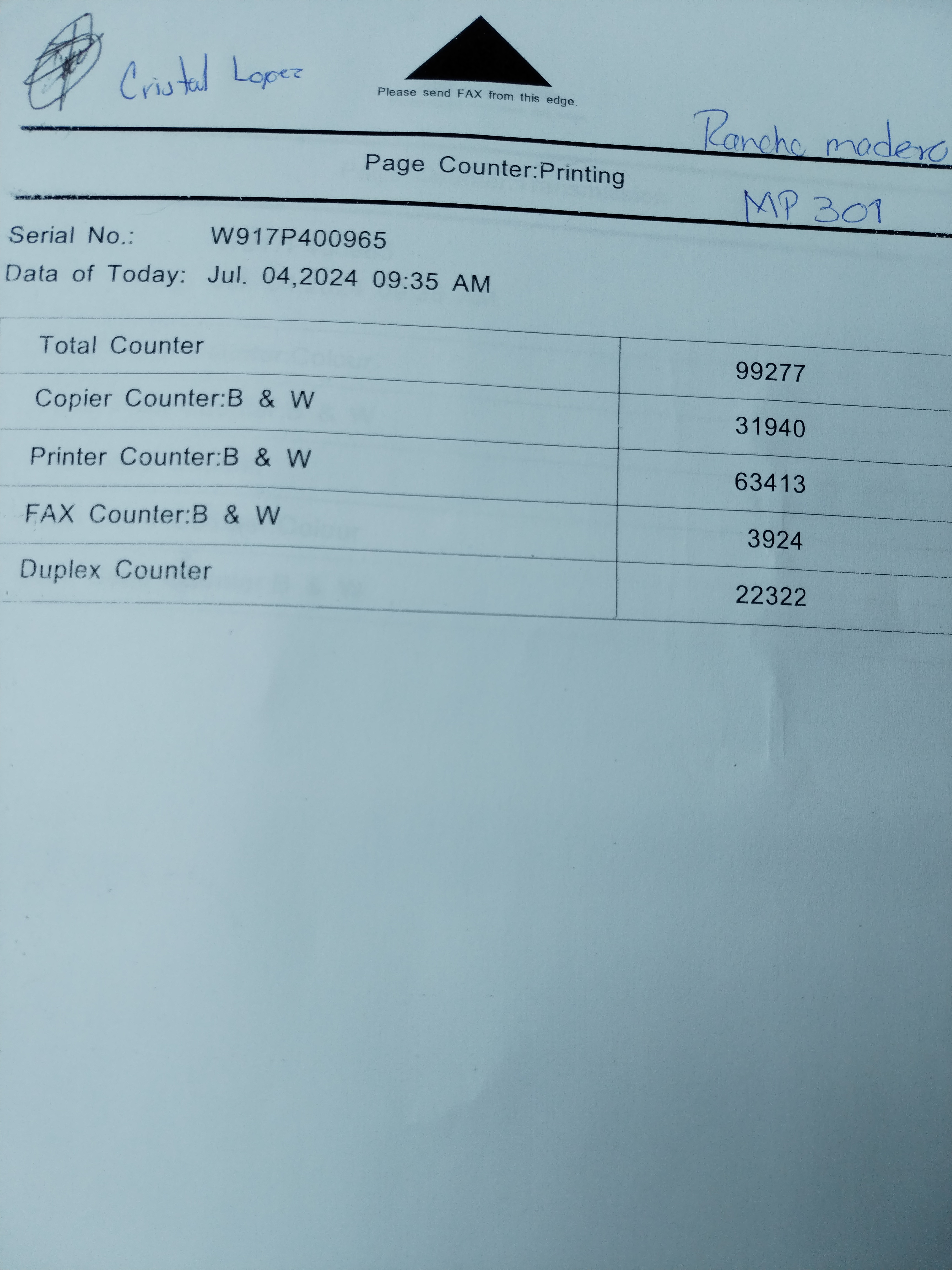 Programar servicio de mtto preventivo en este mes. Marca atasco papel en bandejas y no hay hoja atorada