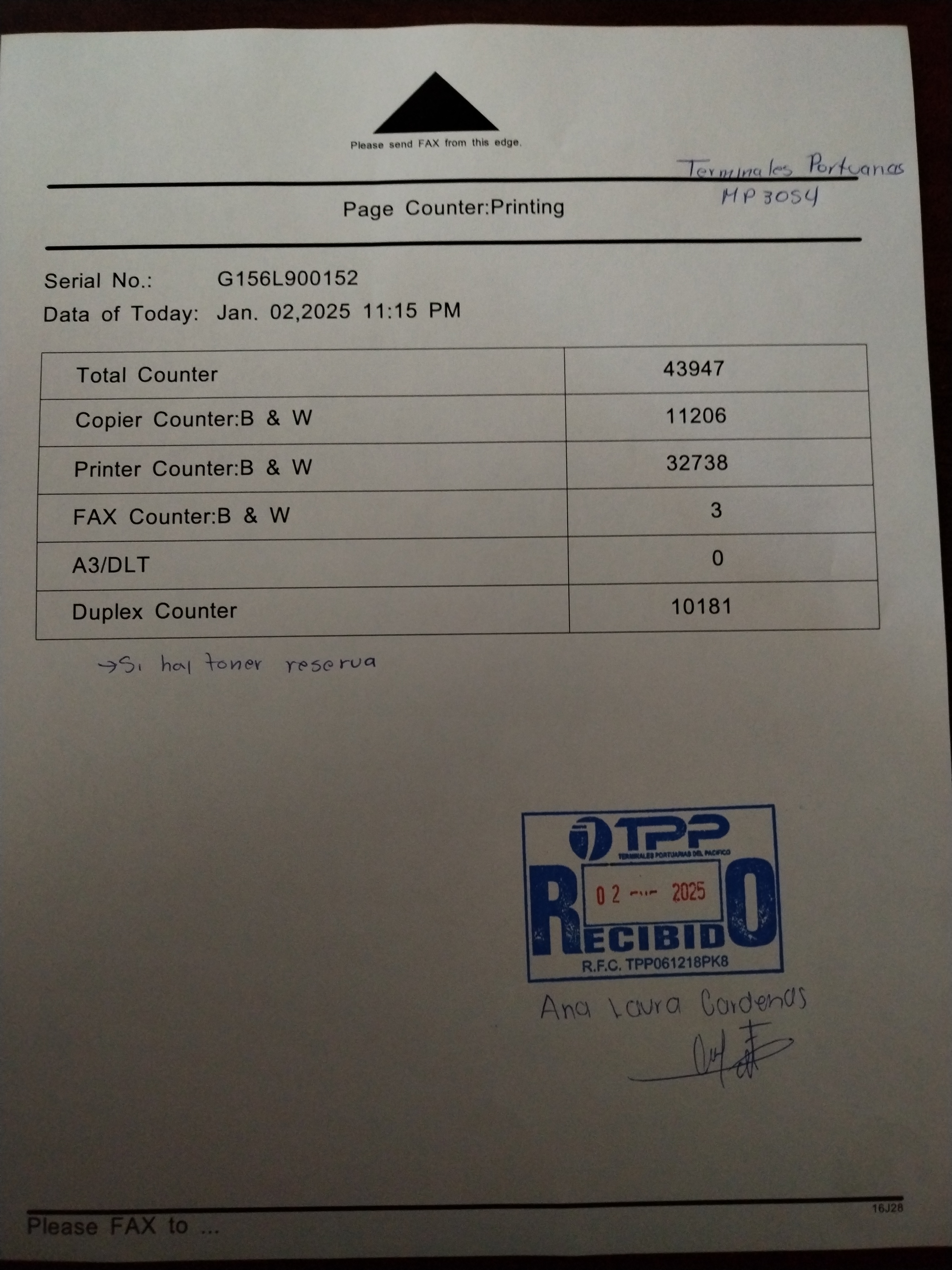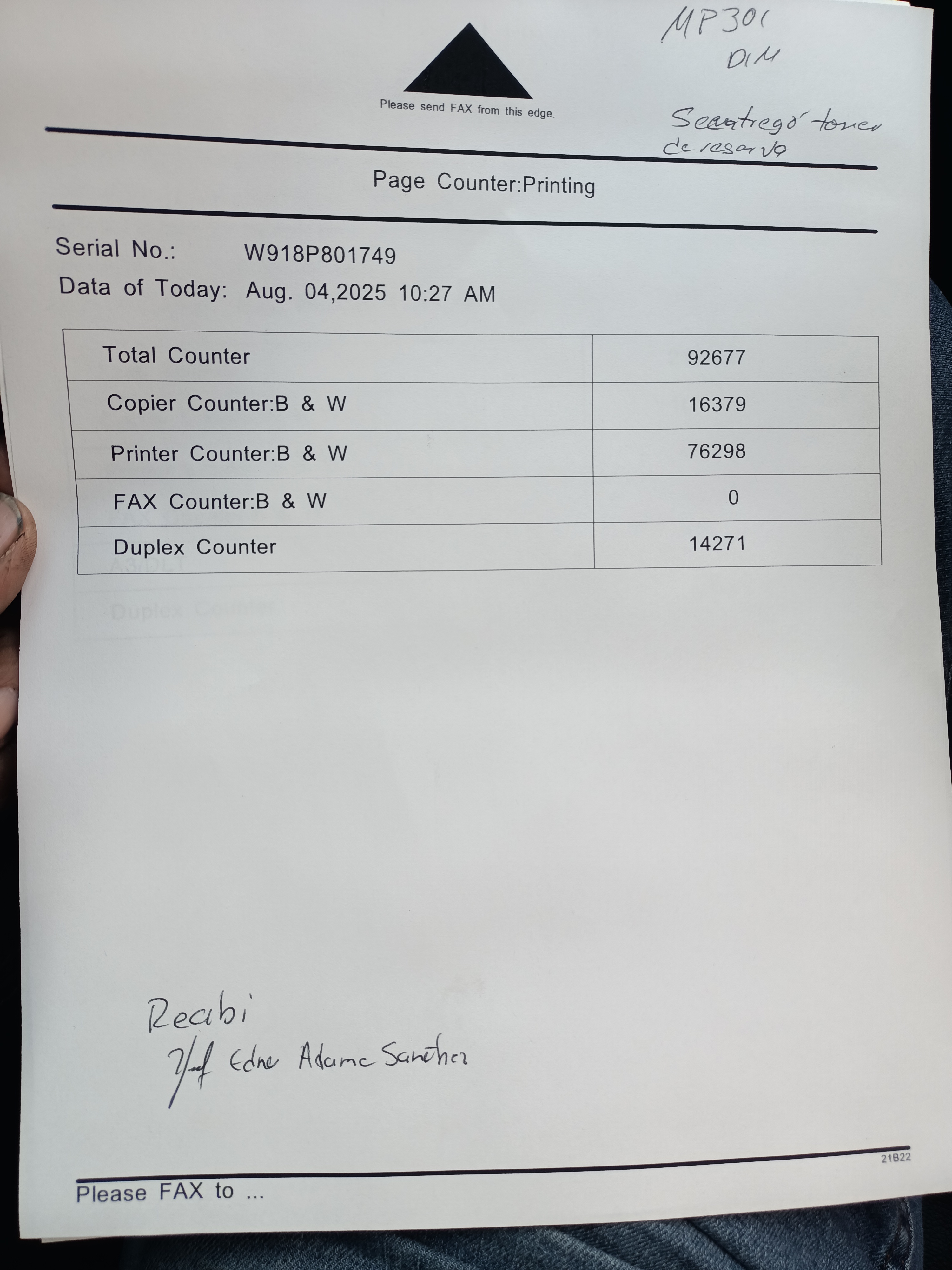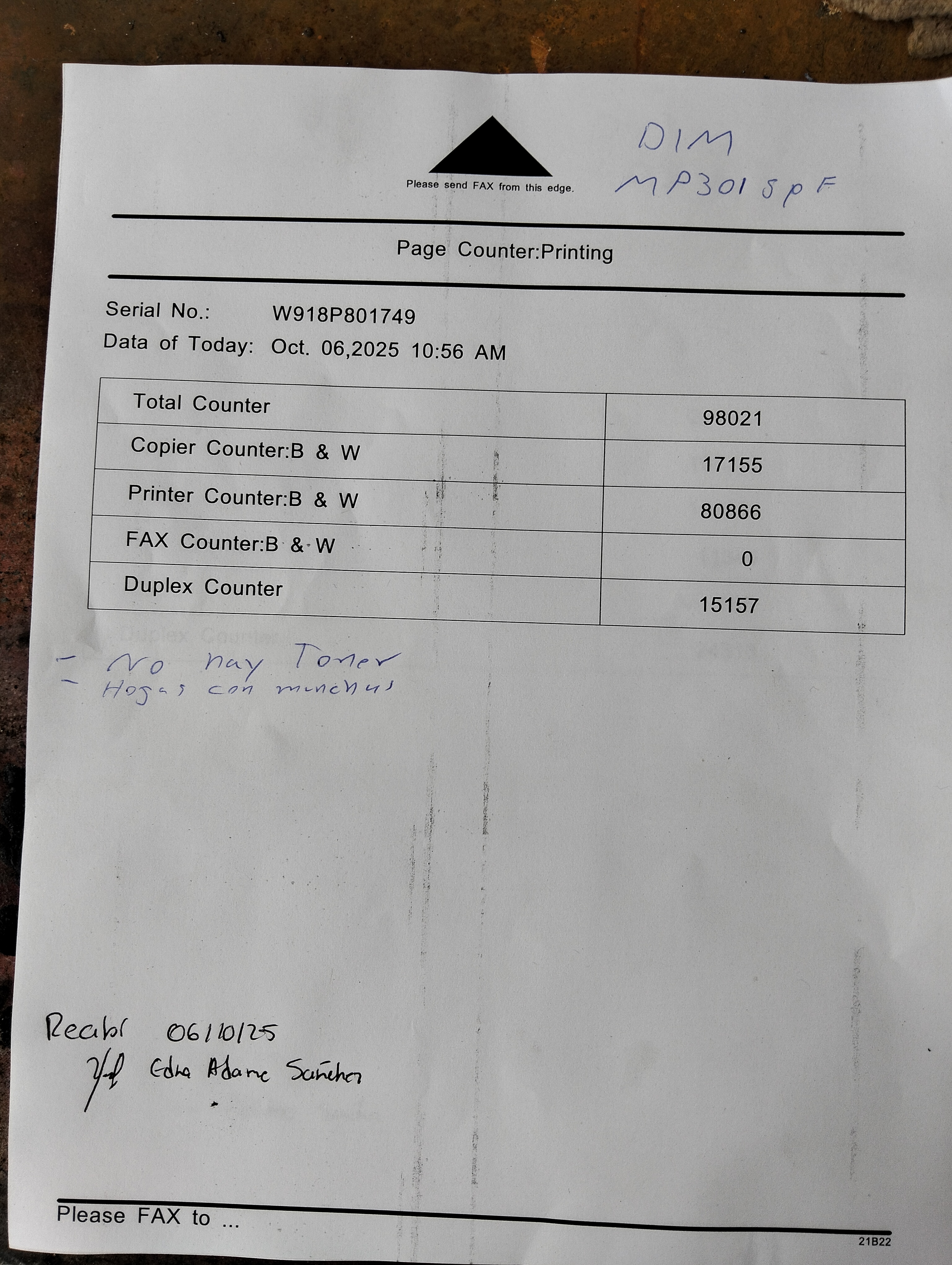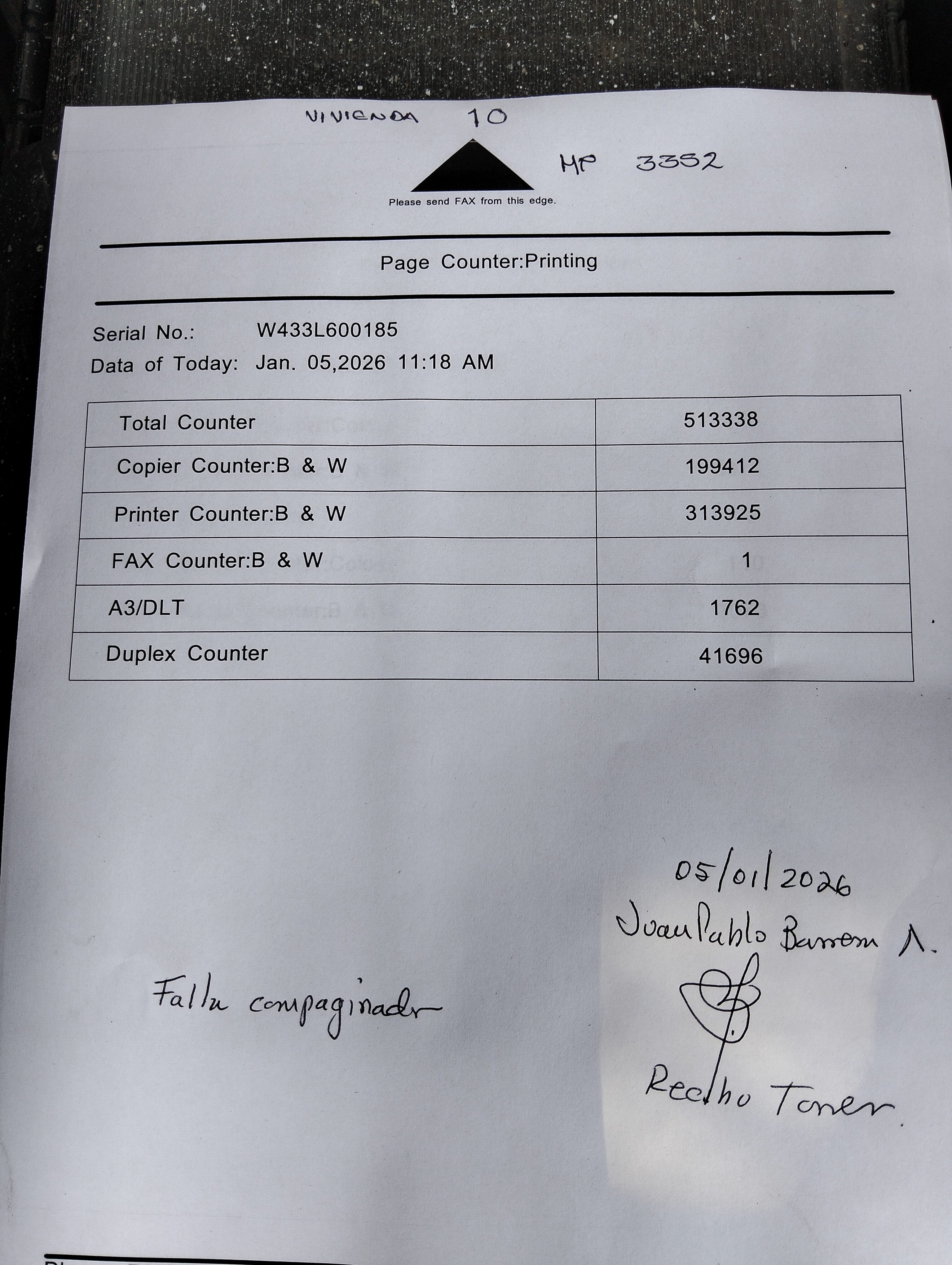 Aqu? firmaron el recibo de t?ner de las 3 m?quinas